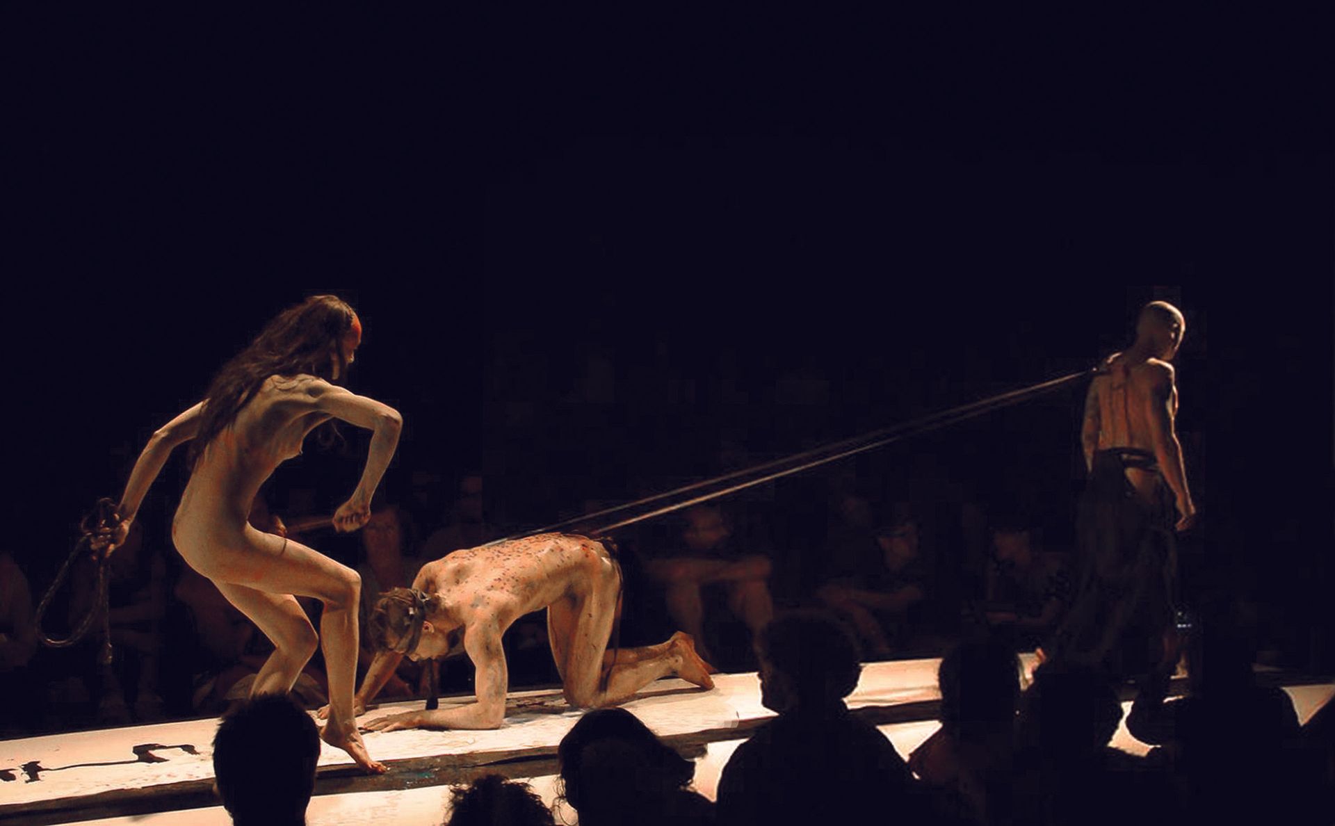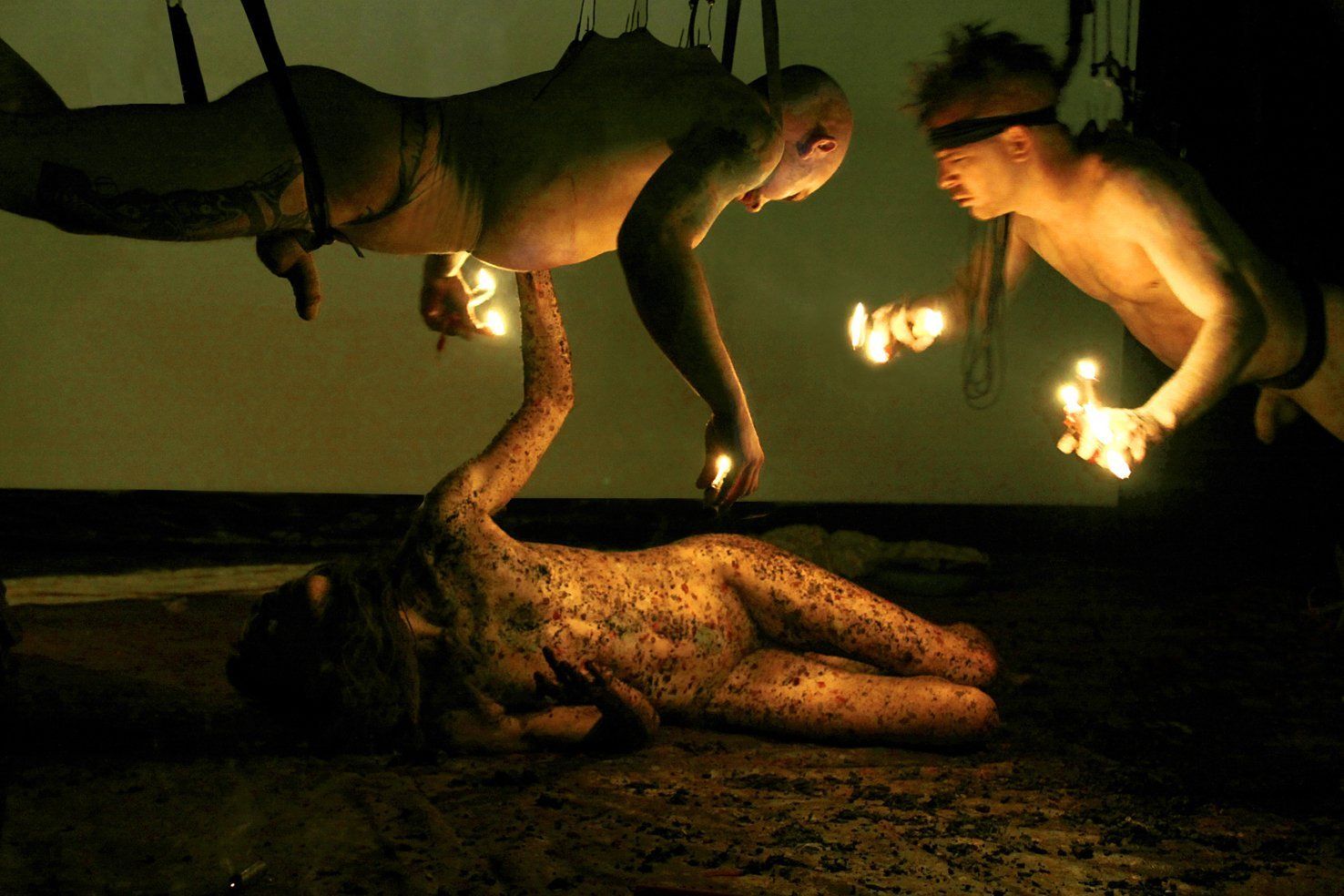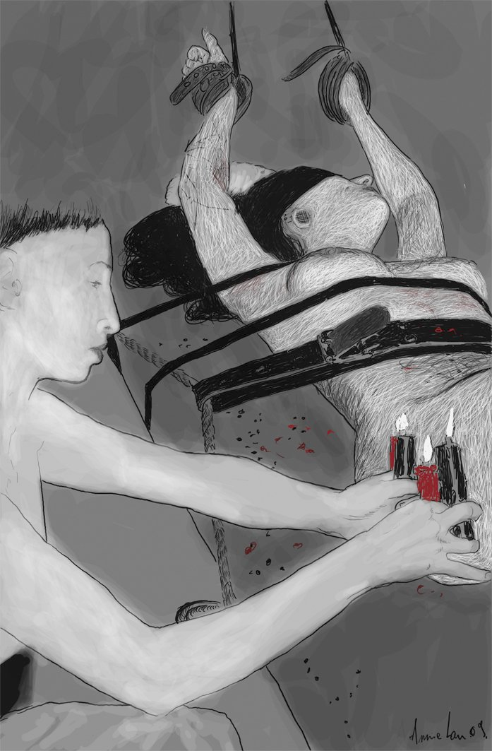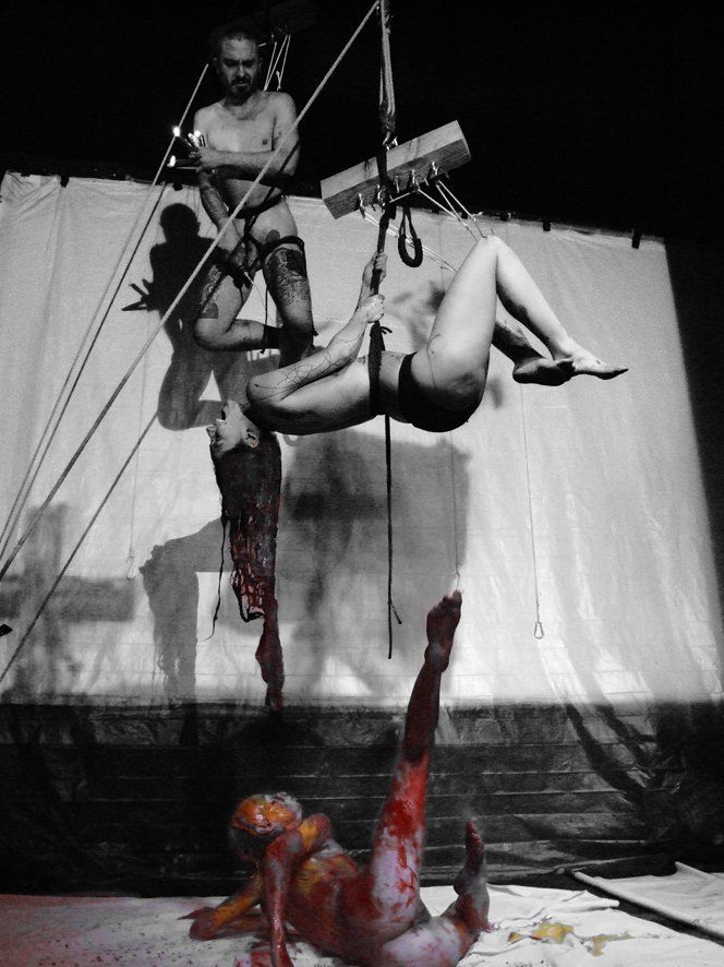 Lam, A (Artist, Dancer, Performer), Paulico, S (Actor, Drawing, Performer), Gwen (Piercer, Actor), XL (Actor, Photographer), Naëlle (Actor, Performer). (2009) Le Trait, in 2 acts. [Performance, Action Painting, Human/Art Installation]. Directed and produced by Annie Lam.
