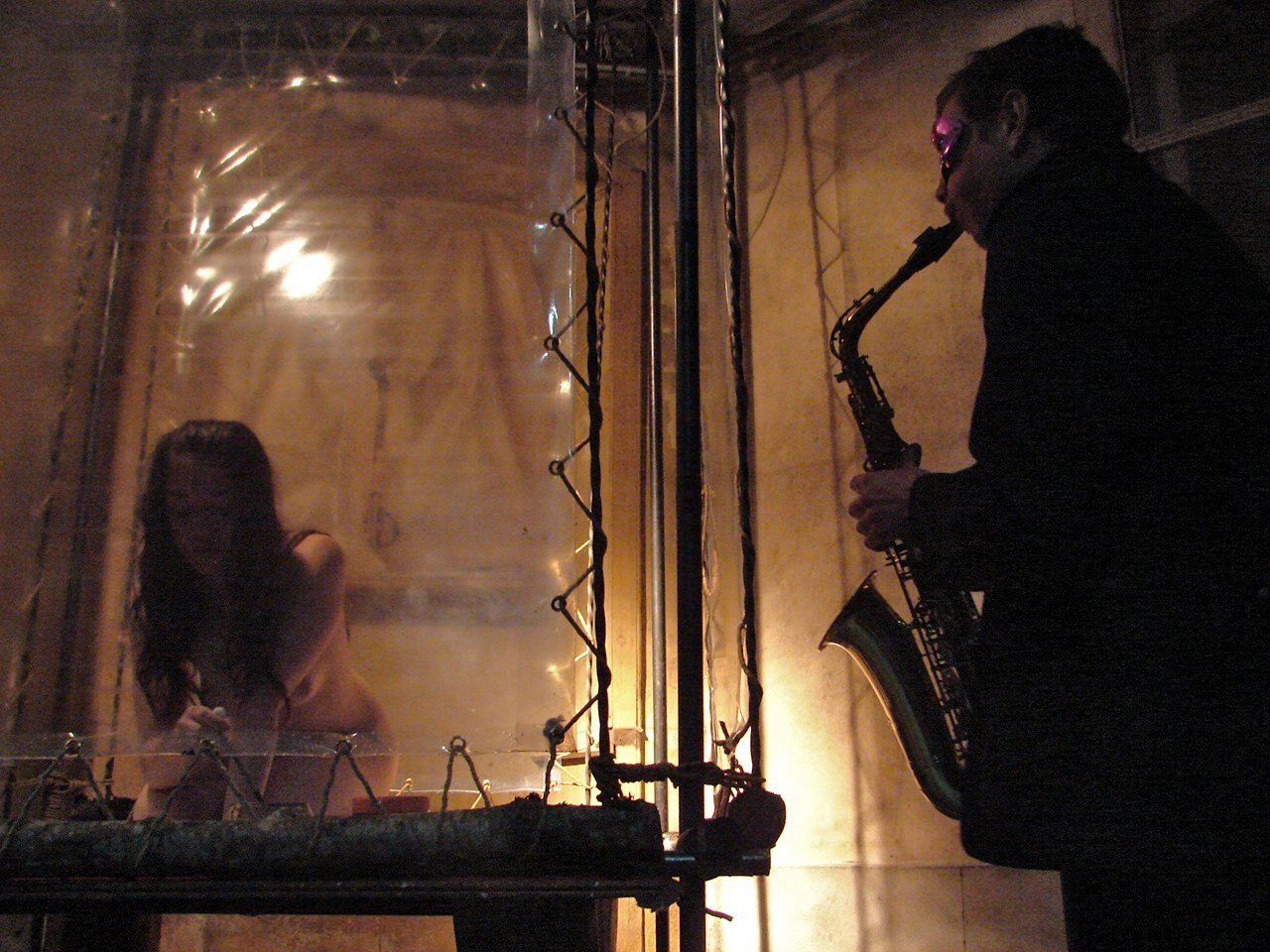 Lam, A (Artist, Dancer, Performer), Sessylia Dark 'N Fun (Actress, Model) Kco (Performer, Model),Oliver The Stone (Model, Performer), Paulico, S (Model, Performer), XL (Model, Photographer), Paulico, T (Musician Basoon), Prual, M (Musician Saxophone), Lucas, C (Musician Percussion), Frouin, A (Musician Voice), Myrthim (Musician Saxophone), Auzytrice (Musician electronic), Regardin, A (Musician Trumpet), Jeff (Rope Access Technician), Soizic (Rope Access Technician). (2010) Humanus Sacrum. [Performance]. Played in 2 acts. Directed and produced by Annie Lam.