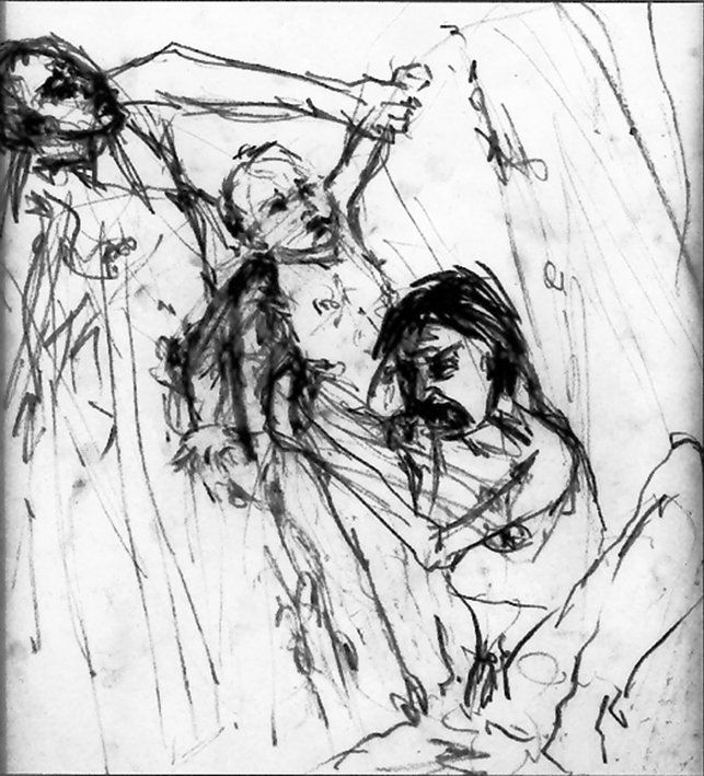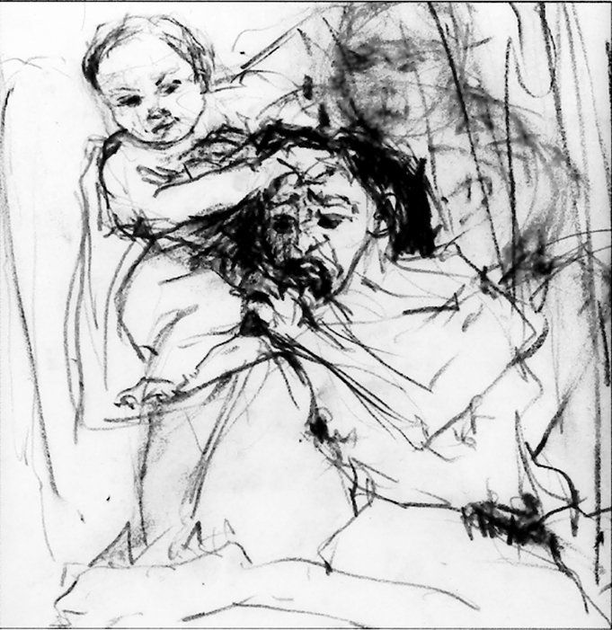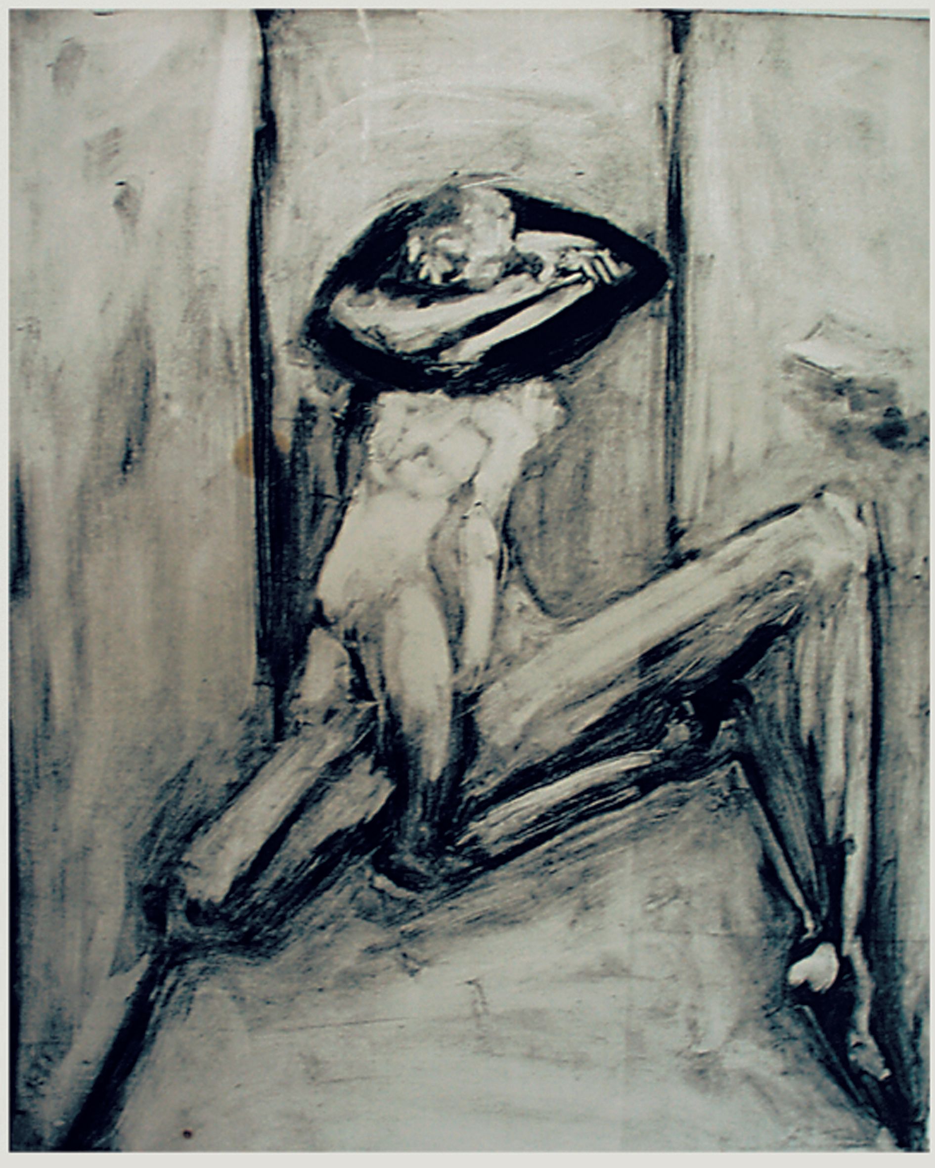 Saturne au féminin (1993), pierre noire sur papier